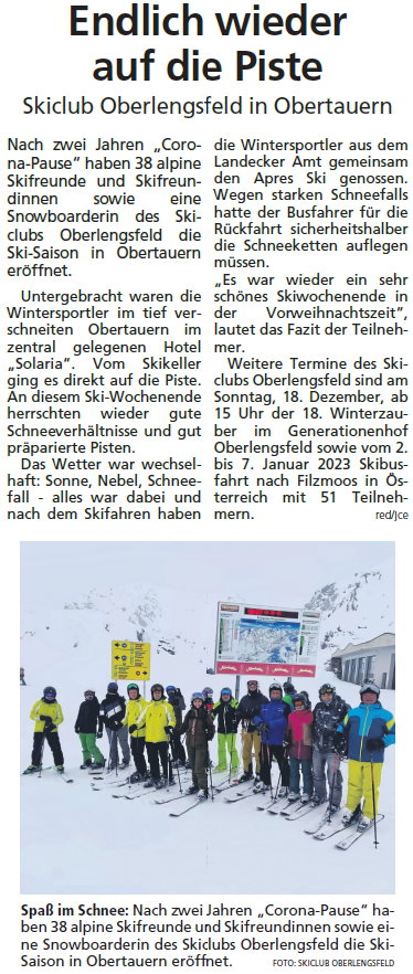 Endlich wieder auf die Piste in Obertauern – Zeitungsartikel